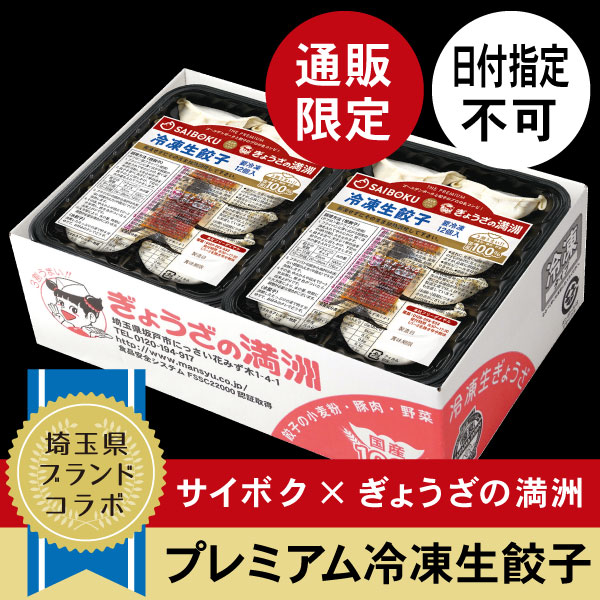 品番:806 プレミアム冷凍餃子72個(SAIBOKU×ぎょうざの満洲) 4,460円 (税込・送料込) 1 2 3 4 5 6 7 8 9 10 ※こちらは冷凍商品です。 送料については以下をご覧ください。 ⇒送料について この商品に関するお問合せ ※沖縄県へのお届けは別途1,000円を 加算させていただきます 【埼玉人気ブランド サイボクとぎょうざの満洲の名コンビで完成! 「THE PREMIUM」餃子】 サイボクの力強いコクのある「ゴールデンポーク」を100%使用。 豚肉のおいしさをたっぷり味わっていただけます。 サイボクプレミアム餃子(12個×6パック) ※こちらはプレミアム餃子のみの商品です。 ※こちらの商品は不定期製造のため、お届け日の指定は出来ません。 ※システム上はお日にちの選択ができますが、お届け日の指定は承りかねますのでご了承くださいませ。 ※お届けは、ご注文いただいてから1~2週間が目安です。 ※賞味期限は製造日より14日以内(-18℃以下の冷凍保存)となっております。 お早めにお召し上がりくださいませ。 ※予告なく販売を終了する場合があります。 ※一箇所の配送先にこちらの商品と通常商品を同時にご注文いただきますと、 同じお届け日になります。 先に通常商品の発送をご希望される場合は、 メッセージ欄にてお申し付けくださいませ。 関連商品 ページ1/3 家庭用1 販売価格 4,160円 (税込) 家庭用2 販売価格 7,360円 (税込) 家庭用3【通販限定】 販売価格 10,980円 (税込) 家庭用餃子4パック【通販限定】 販売価格 2,380円 (税込) 会員メニュー サイト内検索 商品カテゴリ 家庭用 業務用 お試し60個 詰合せ えび/えびセット サイボクプレミアム餃子